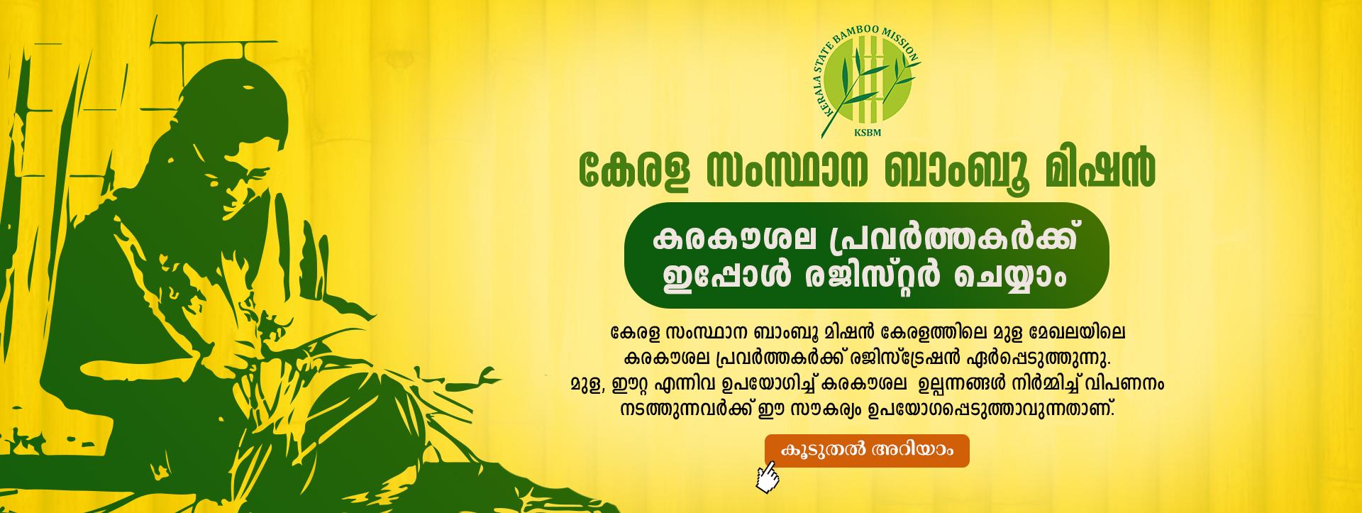Kerala State Bamboo Mission (KSBM) was constituted under Department of Industries & Commerce and functioning at Kerala Bureau of Industrial Promotion with the broad aim of marshaling the scattered resources of the State and adopting a focused approach to revitalize the bamboo sector by promoting value addition, enhancing income generation and alleviating poverty through the following interventions.. Read More
